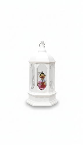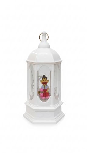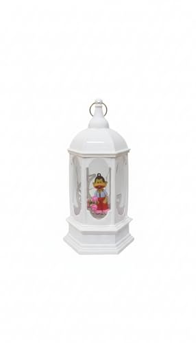 Generic - فانوس رمضانى بلاستيك بلون ابيض قبه خماسى وحلقه دهبى بوحده اضائه وصوت بداخله عروسه وهلال خمات عاليه الجوده