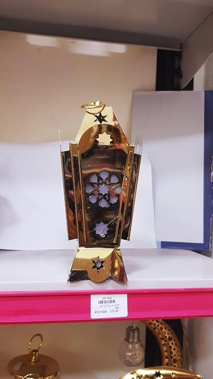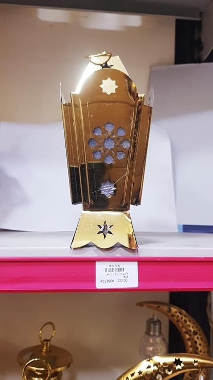 Generic - فانوس رمضان فاخر الفولاذ المقاوم للصدأ مع إضاءة ليد، تصميم عصري خمات عاليه الجوده بنمط مثقوب رائع لديكور رمضان بلون دهبى