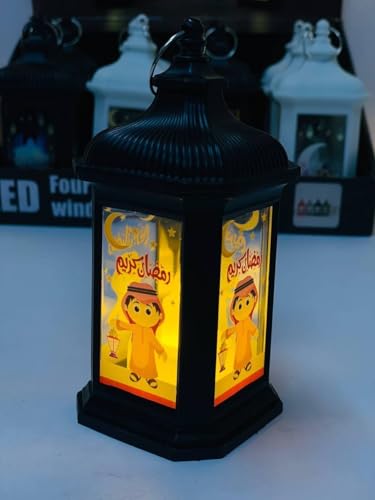 Generic - فانوس رمضان للأطفال بأشكال كرتونية داخلية وإضاءة وتصميم رمضاني، لون أبيض وأسود