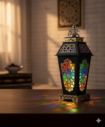 Generic - فانوس رمضان-متعدد الاشكال (فانوس رمضان تراثي فاخر بزخارف هندسية دقيقة وزجاج ملون معا وحدة اضاءه و صوت يعكس أجواء رمضانية دافئة)