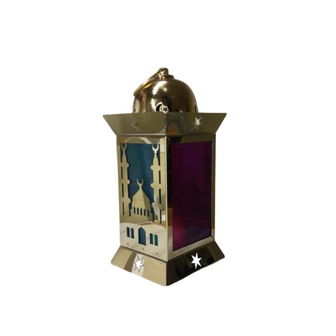 Generic - فانوس رمضان معدن بلون الذهيي بشمعة مضيئة