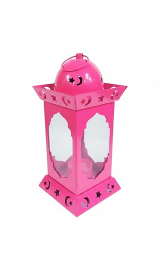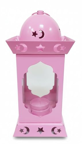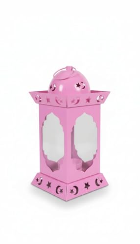 Generic - فانوس رمضانى معدن بزجاج قبه مدوره مع وحده اضائه بشمعه خمات عاليه الجوده مع حلقه دعبى فانوس على شكل مسجد بلون بينك