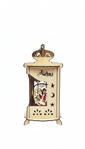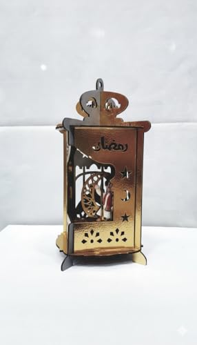 Generic - فانوس صوت وضوء رمضانى خشبى دهبى فى بنى على شكل رباعىداخله شخصيات رمضانيه وهلال خمات عاليه الجوده