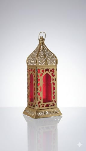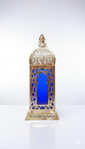 Generic - فانوس معدن بجوانب زجاج احمر وازرق خمات عاليه الجوده على شكل مسجد مع اضائعه ديكور مميز للمنازل والمكاتب