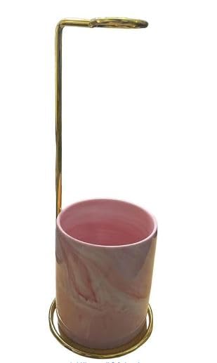Generic - فازا بورسلين لون بينك بقاعده معدن دهبي
