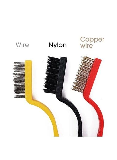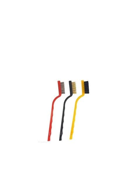 - مجموعة مكونة من 3 قطع من فرش الأسلاك الصغيرة - تتضمن: (1) فرشاة سلك نايلون، (1) فرشاة سلك نحاسي، (1) فرشاة سلك من الفولاذ المقاوم للصدأ