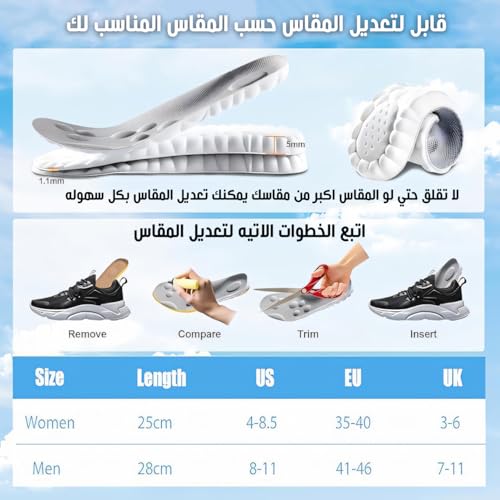 - قابل للتعديل حسب المقاس: يمكن قص النعل بسهولة ليناسب جميع أنواع الأحذية الرجالية والنسائية.