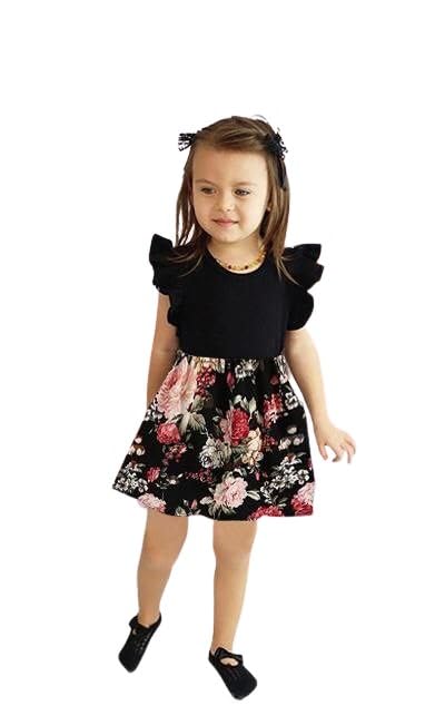Generic - فستان بناتي قطعه واحده نصف اسود والنصف الاخر متعدد الالوان