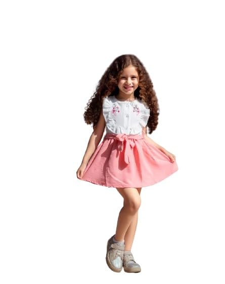 Generic - فستان بناتي نص ابيض والنصف الاخر سيمون ويتوسطه حزام سيمون