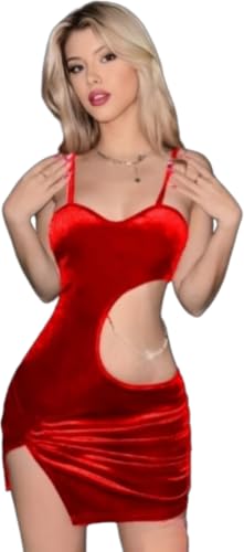 Generic - فستان لانجيرى قطيفة مميز لون احمر