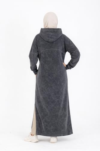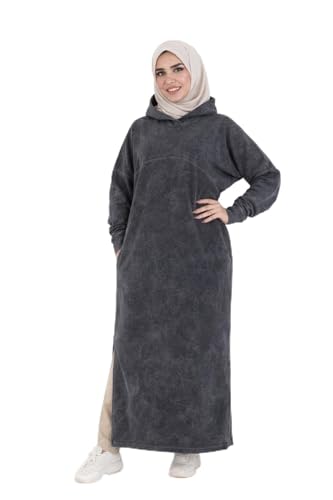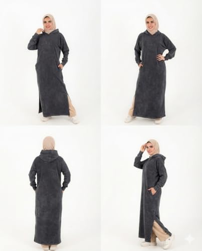 Generic - دريس حريمي شتوي هودي قطن ميلتون تقيل قصّة واسعة مريحة بجيبين رمادي غامق محجر تصميم عصري وعملي مثالي للعمل والنادي والخروج والتسوق ومريح للصلاة والتراويح
