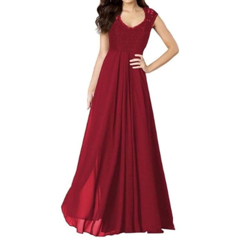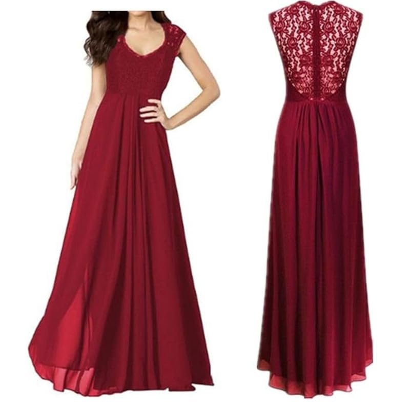 Generic - فستان نسائى دون اكمام نبيتى صدر دانتيل مبطم وجسم شيفون مبطن بسوستة من الخلف