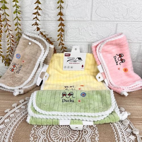 - تصميم عملي مع حلقة تعليق: تأتي مع حلقة تعليق قوية لسهولة التخزين والتجفيف السريع، متوفرة بألوان زاهية متعددة مع تطريز لطيف