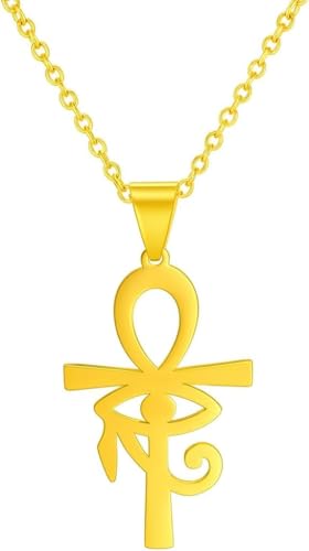 Generic - قلادة عنخ امون،مفتاح الحياه ستانلس ستيل ذهبي نقي ، بتصميم هيروغليفي