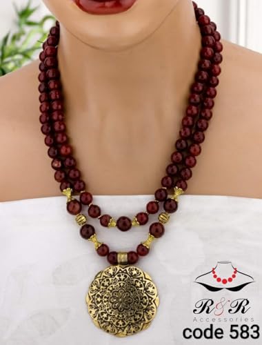 Generic - عقد نسائى دورين من المرجان الاحمر الطبيعى بقلاده نحاس