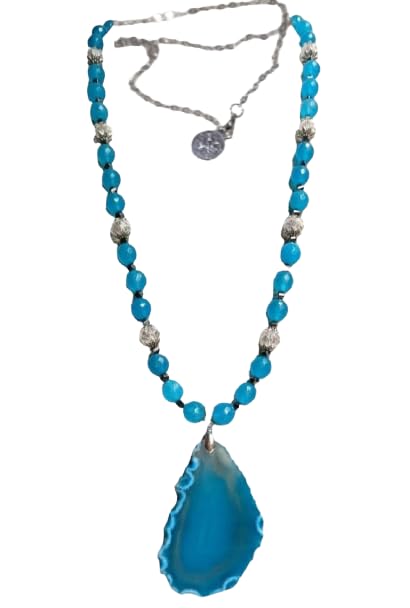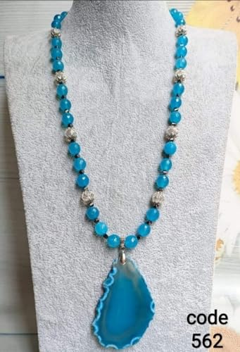Generic - عقد نسائى من العقيق والكريستال بقلاده عقيق طبيعى، للنساء