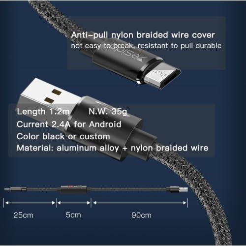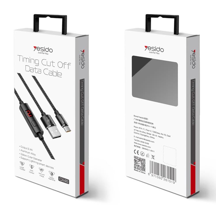 كابل شحن USB - موديل CA46 - كابل داتا - 2.4 امبير - شحن سريع - 5 امبير - يدعم جميع اجهزة النوع سي - اسود