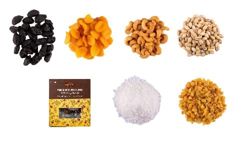 عام - كرتونة مكسرات رمضان من حاج عرفه (7 أنواع_ 2.200 كجم) فستق وكاجو ومشمش وقراصيا وزبيب وجوز هند وتمر مراقي بالقهوة