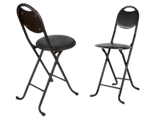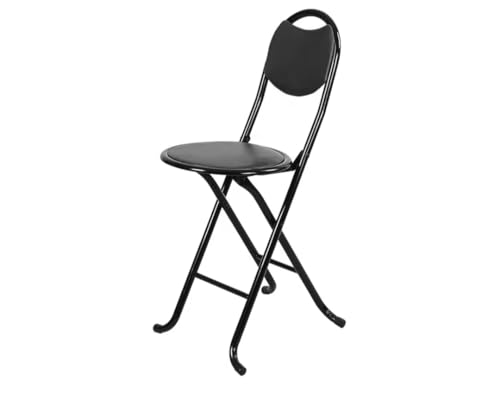Generic - كرسي معدني محمول قابل للطي مزود بمسند ظهر ناعم من الجلد الصناعي مناسب للصلاة والرحلات، أسود (طراز 1)