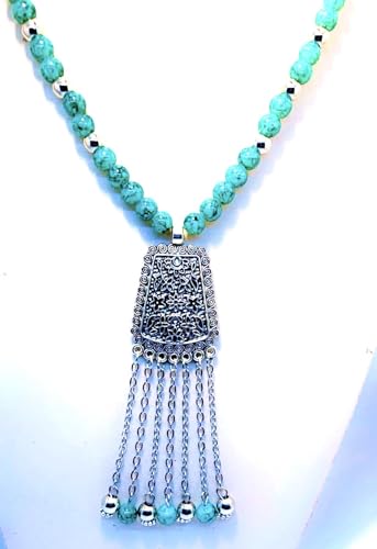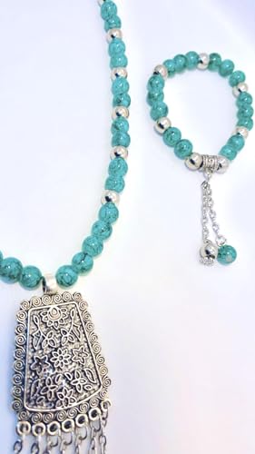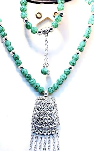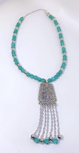 Generic - كولية هاند ميد طويلة من المرمر الاخضر المزخرف بالاسود موديل الورد اسود وفري سايز للنساء