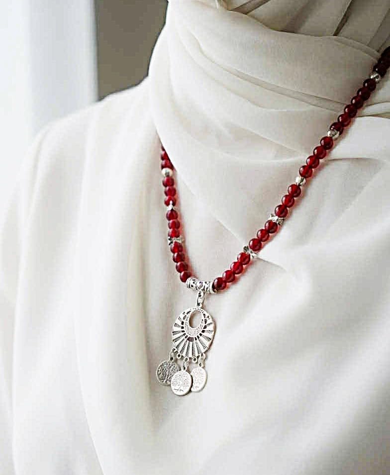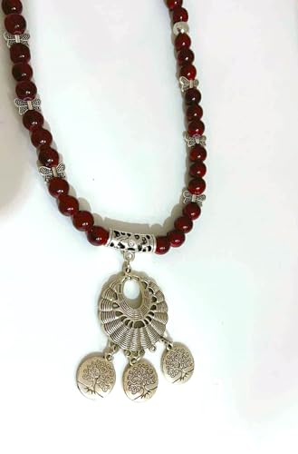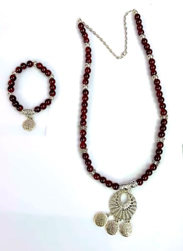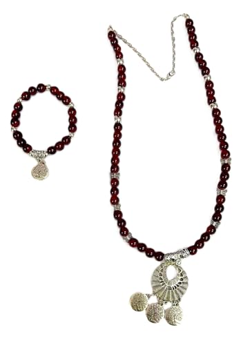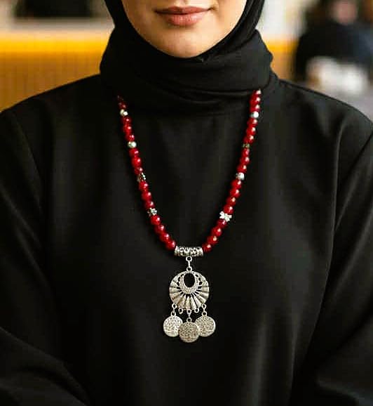 Generic - كوليه طويل من المرمرالنبيتي (ومعه أسوره) مزود بدلايات مزخرفة وسلسلة للتحكم بالطول