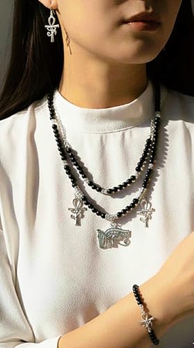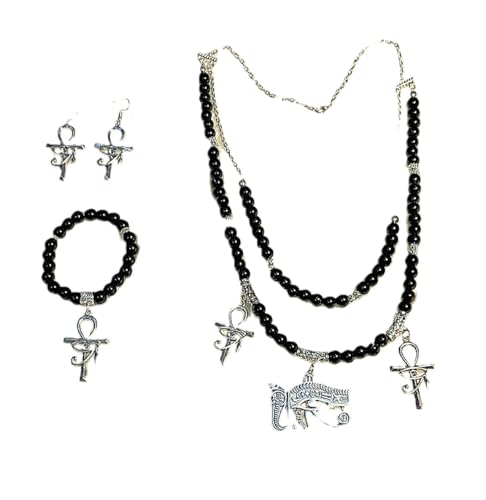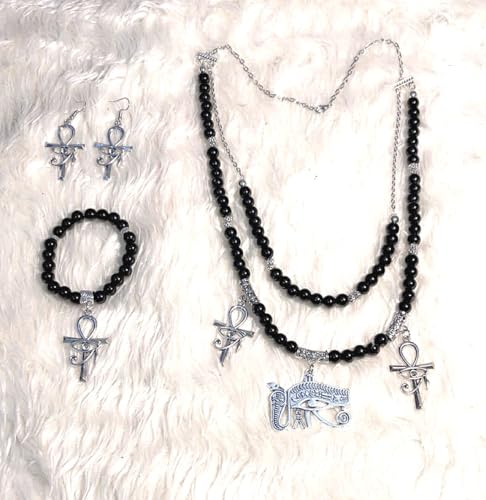 Generic - كوليه طويل من المرمر الاسود ومعه اسوره مزود بدلايات مزخرفه(ومعه حلق هديه)
