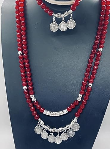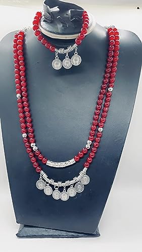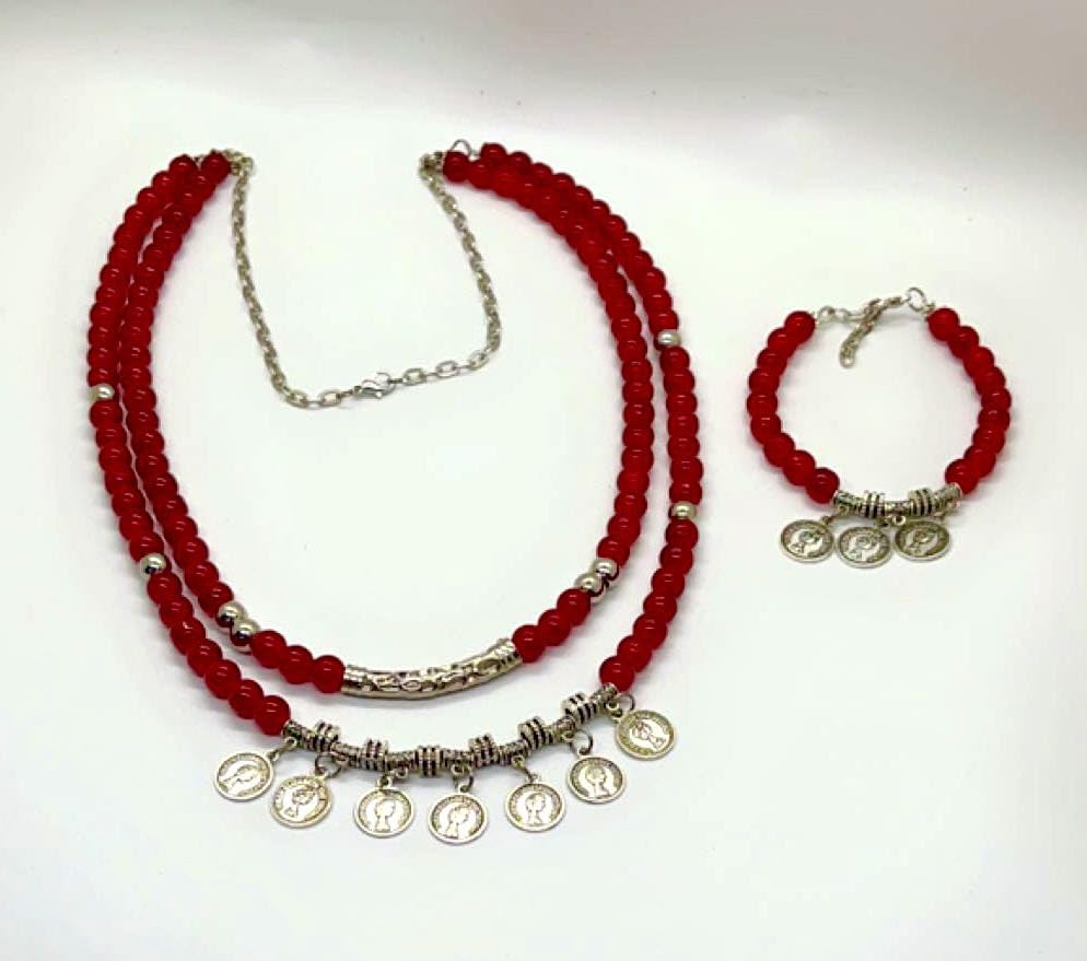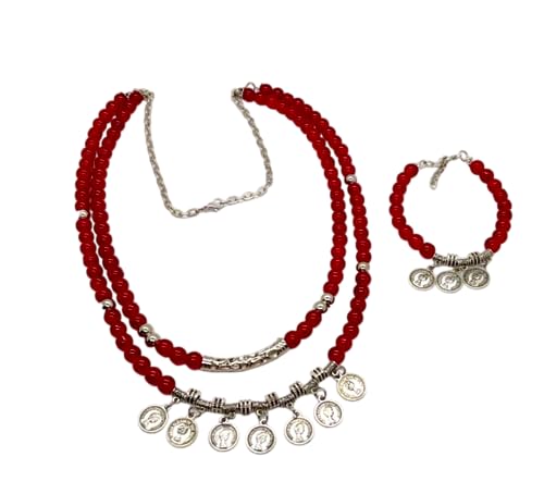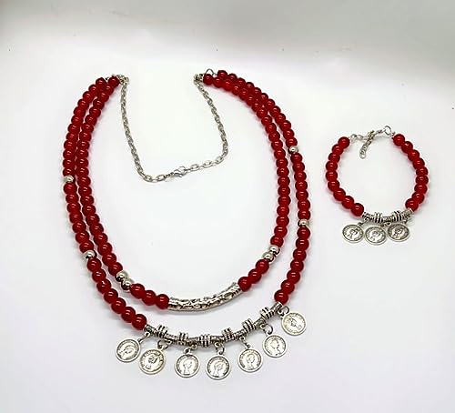 Generic - كوليه طويل من المرمر النبيتي (ومعه أسوره ) وبها سلسله للتحكم بالطول، للنساء