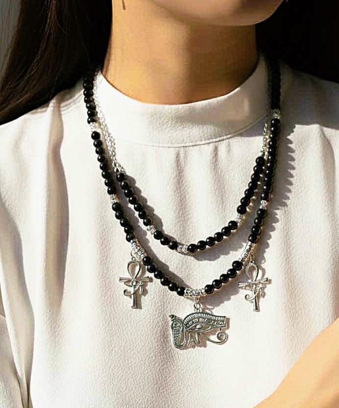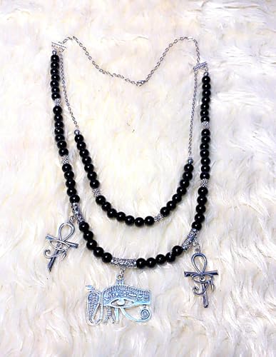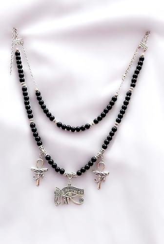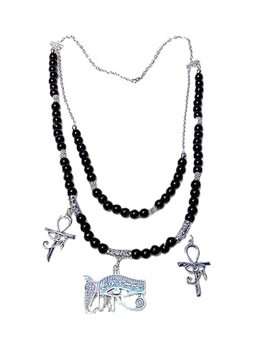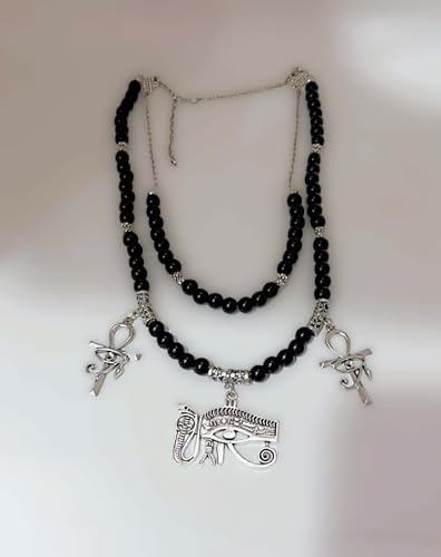 Generic - كوليه طويل مصنوع يديويًا من المرمر الأسود ومزود بدلايات مزخرفة (موديل فرعوني)