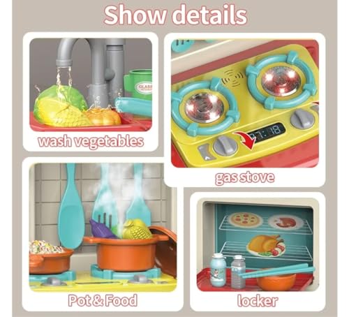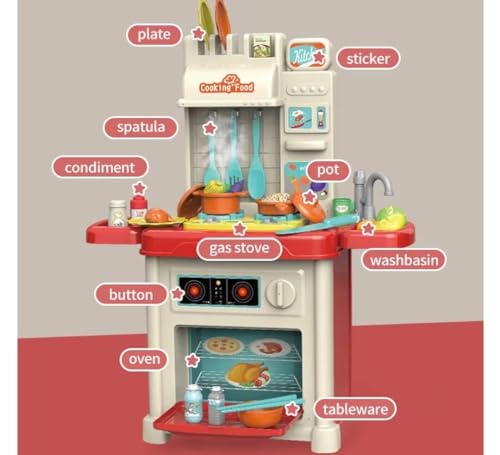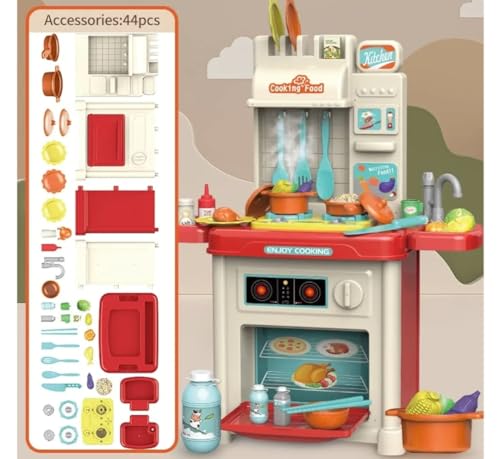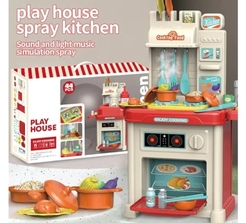- طقم المطبخ الجميل العصري للاطفال، بيعمل موسيقي و انوار و بيطلع بخار 😻 ، 44 قطعه ، ابعاده 77 سم * 22 سم * 53 سم