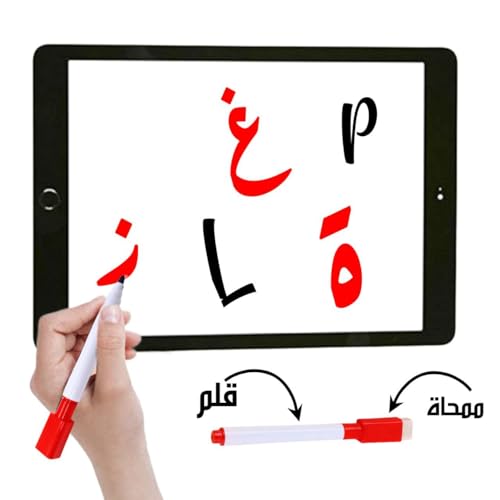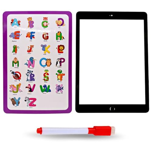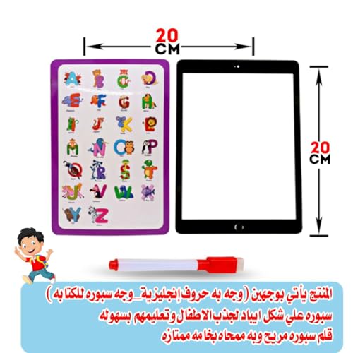 Generic - لوح كتب تعليمية شكل قرص لوح خشب - سبوره محموله مع قلم وممحه - سبوره وجهين للالكتابه ووجه حرف انجليزيه وصصور حيوانات