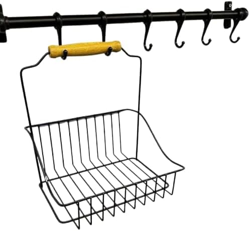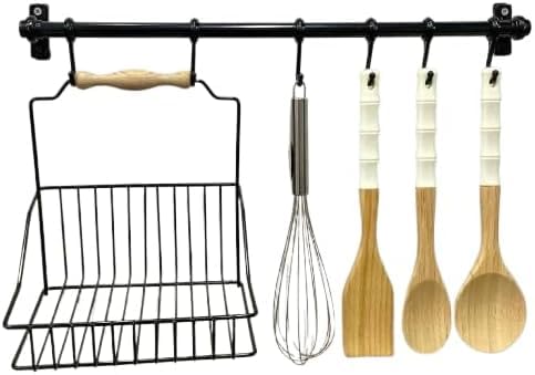generic - ماسورة معدنية متعددة الاستخدامات (تحتوي على هوكات للتعليق وحامل للصوصات والزجاجات) طويلة ومتينة باللون الاسود