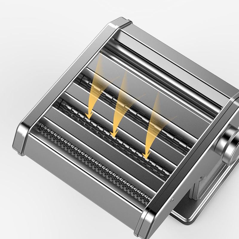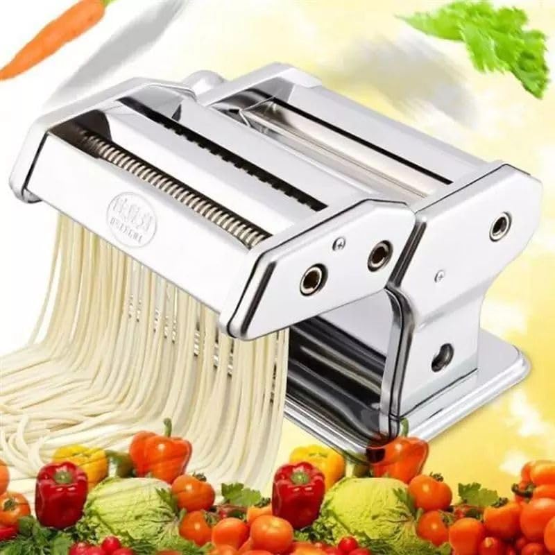 - ماكينه المكرونه والاندومي ماكينه صنع الشعريه والمكرونه والعيش الخباز موديل ايطالي صناعه صيني متعدده المستويات بتعمل جميع انواع المكرونه والمعجنات مصنوعة من الفولاذ المطلي بالكروم. عرض اسطوانات "هو 5-15 / 16". مجهزة مقبض الباب لتغيير سمك العجين المعكرونة. يأتي مع اثنين القياسية اسطوانات مسجلة،. لتاجلياتيلي، 1/32 "والشعيرية، 1/64". وعزز كل الأجزاء المتحركة وخفف. وشملت المشبك. طول 8 1/4 "، والعرض7 1/2 الوزن: 7 1/4 رطل.