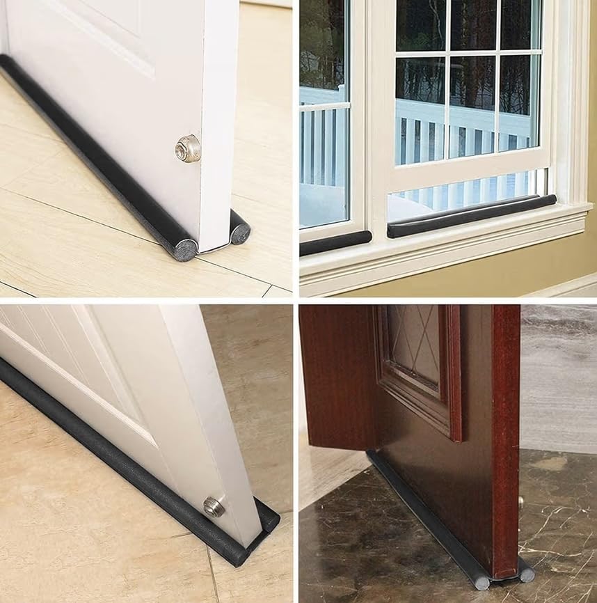 - مانع تسريب أسفل الباب مصمم بجلد متين مع عازل إسفنج عالي الكثافة يساعد على سد الفراغ أسفل الباب بإحكام، مما يمنع دخول الهواء البارد أو الساخن والأتربة والغبار. يوفر بيئة أكثر نظافة وراحة داخل المنزل ويساعد على الحفاظ على درجة الحرارة المناسبة داخل الغرفة سواء في الصيف أو الشتاء.