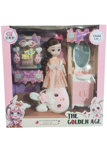 Generic - مجموعة دمية "العصر الذهبي" الأنيقة للاطفال مع طقم تسريحة وحوض غسيل واكسسوارات شعر – طقم العاب متكامل للبنات بتصميم عصري وألوان زاهية