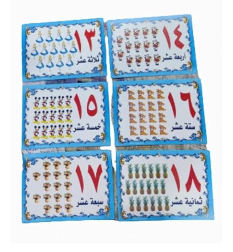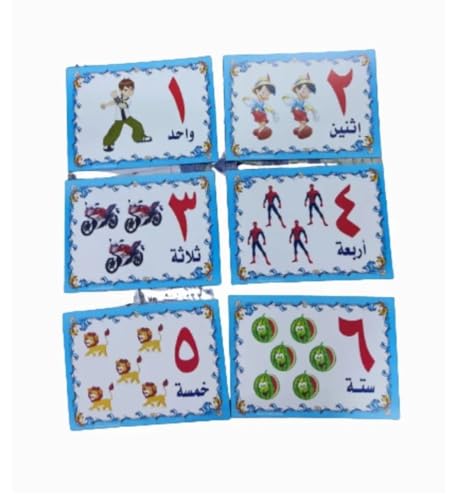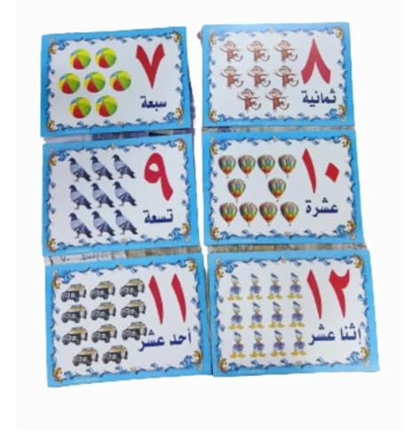 Generic - مجموعة بطاقات تعليمية ورقية بالأرقام العربية للأطفال للمساعدة على الكتابة والرسم والتلوين لتنمية المهارات الأساسية وتشجيع التفوق والإبداع بتصميم أشكال هندسية، حجم متوسط