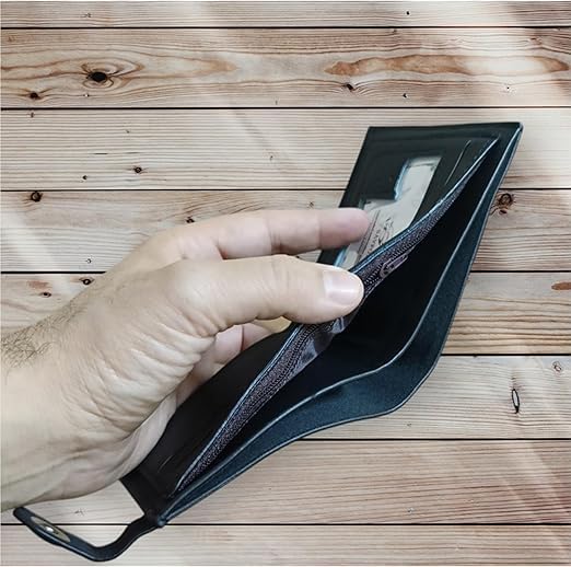 - تصميم مطوي عملي: تصميم مدمج وقابل للطي يسهل حمله في الجيب ويوفر مساحة تخزين كافية للبطاقات والنقود