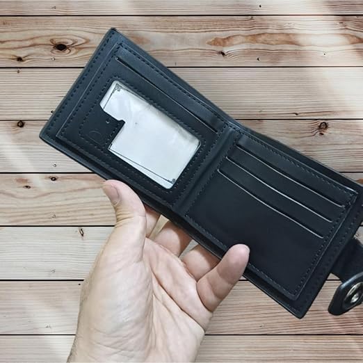 - مادة جلدية فاخرة: محفظة رجالية مصنوعة من الجلد الأسود عالي الجودة مع خياطة متينة تضمن الاستخدام طويل الأمد