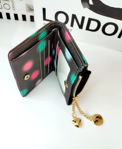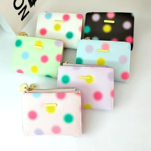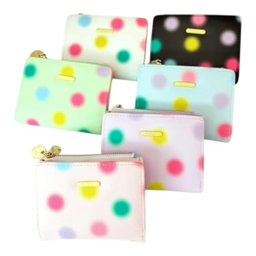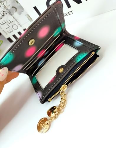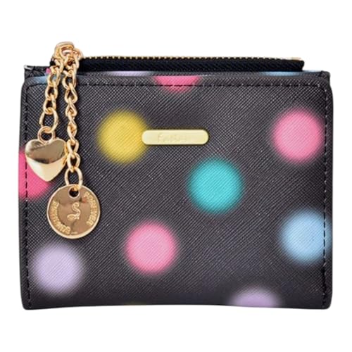 - تصميم عصري: محفظة صغيرة أنيقة بنقش جلدي مع نمط دوائر ملونة جذابة على خلفية سوداء