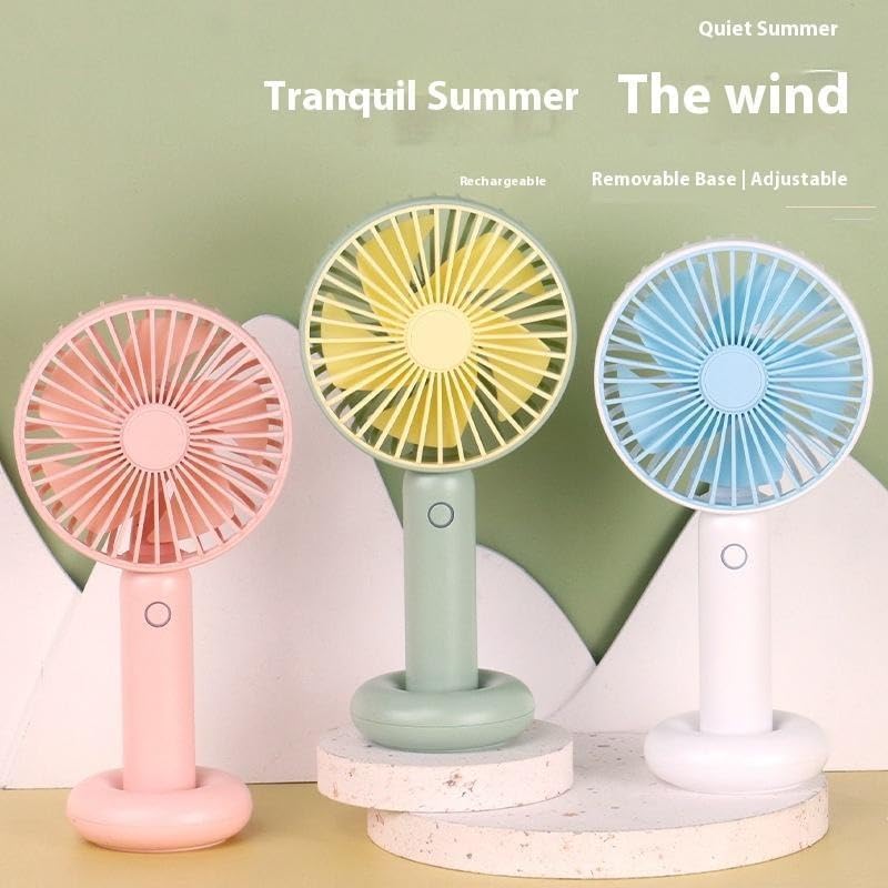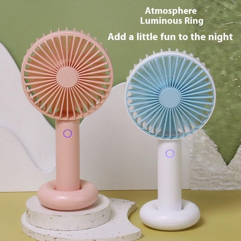 Generic - مروحه يد شحن بنور+قاعده مدوره مروحة اليد القابلة للشحن بنور LED و قاعدة متعددة الاستخدامات