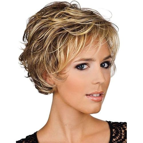 Generic - باروكه شعر مستعار باللون الاشقر مناسب للارتداء اليومي والمناسبات مزود بكليبسات ودانتيل داخلي لسهوله الارتداء قصه بوب مختلفه وفريده شعر صناعي حراري