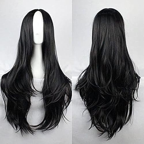 Generic - باروكه شعر مستعار باللون الاسود الداكن مصنوعه من الياف صناعيه فايبر حراري