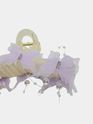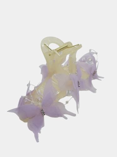 عام - مشابك شعر مزخرفة على شكل فراشة مع خرز كريستالي (بنفسجي)