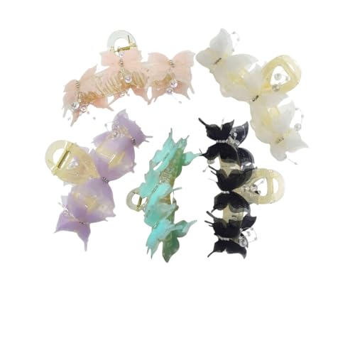 - التصميم: مشابك شعر أنيقة على شكل فراشة مزينة بخرز كريستالي لامع، متوفرة بألوان باستيل متعددة بما في ذلك الوردي والأرجواني والأخضر الفاتح والأبيض والأسود