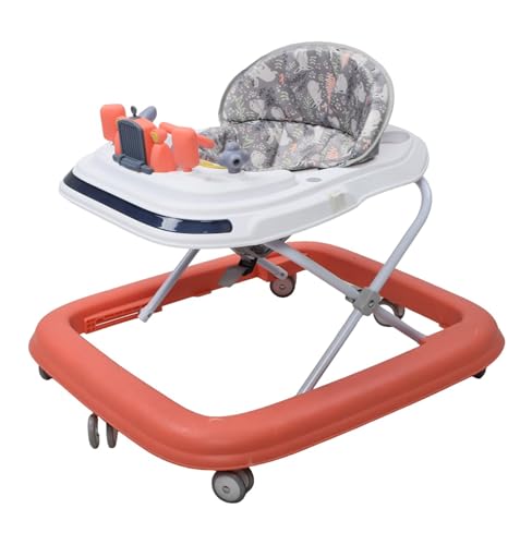 Generic - مشاية أطفال بتصميم دركسيون من البلاستيك – مزودة بإضاءة وصوت، أبيض/برتقالي