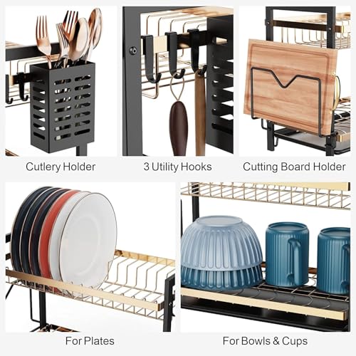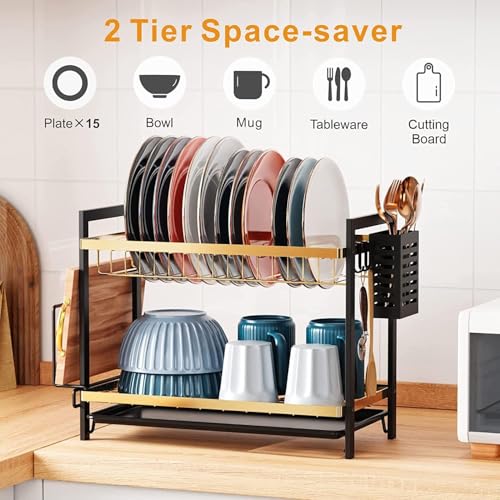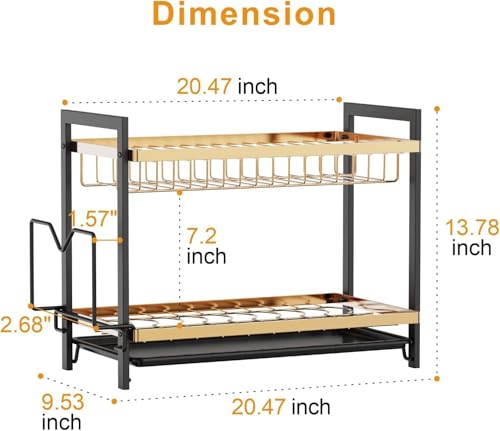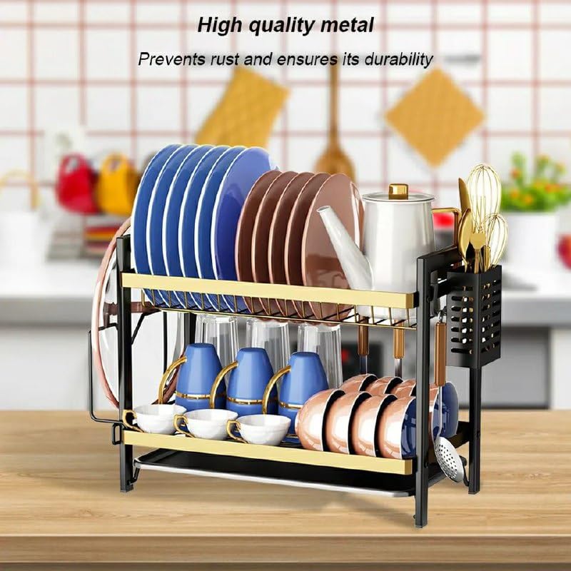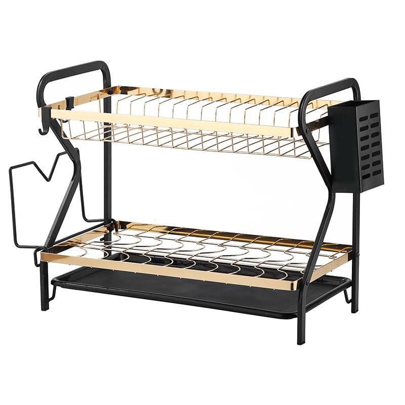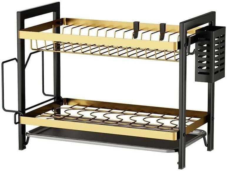 Generic - مطبقية ٢ دور جولد المطبقية الجولد المعدن، مطبقية كاملة متكاملة لكل احتياجات المطبخ، منظم للأطباق والأكواب، منظم للمعالق الشوك السكاكين، ومنظم للبلانشه والقطاعات