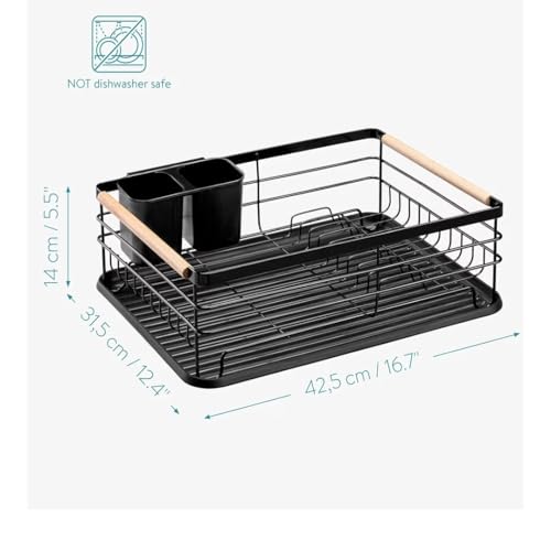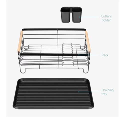 - المواصفات: القياسات - 42.5 × 31.5 × 14 سم (16.7 × 12.4 × 5.5 بوصة). سوف تحصل على رف واحد، 1 × صينية تنقيط و1 × حامل أدوات مائدة قابل للإزالة. رف التجفيف هذا مصنوع من خشب الزان والبلاستيك والحديد.