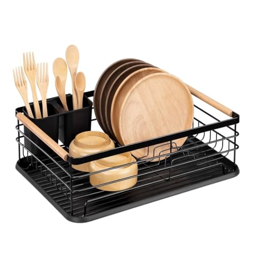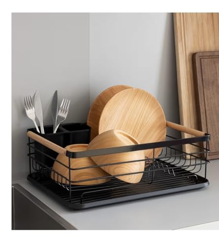 - سهل الحمل: يمكن إزالة رف التجفيف بسهولة من صينية التنقيط. لذلك، يمكنك نقل الأطباق الجافة إلى مكان أكثر ملاءمة لوضعها في التخزين. كما أن المقابض الخشبية تجعل من السهل حملها.