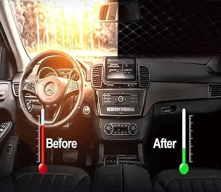 - يحافظ الغطاء على المقاعد وعجلات القيادة ولوحات العدادات في السيارة باردة حيث يعمل على حمايه سيارتك من الأشعة فوق البنفسجية مما يؤدى الى الحفاظ على مقصورة سيارتك وعجله القيادة و مقاعد السيارة بحاله جيدة , بالإضافة إلى انه مناسب لجميع الفصول كما يحمى من الغبار والثلج والجليد والصقيع وما إلى ذلك .