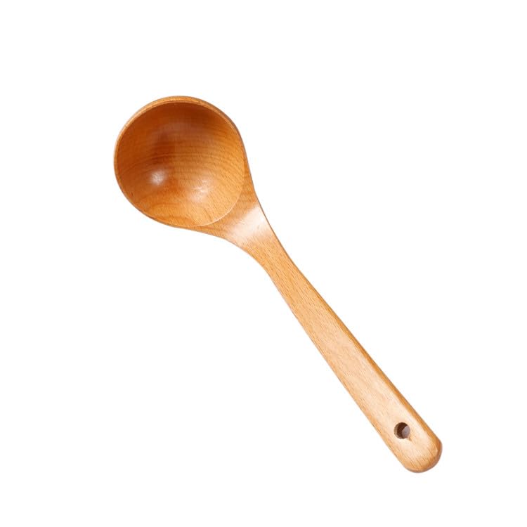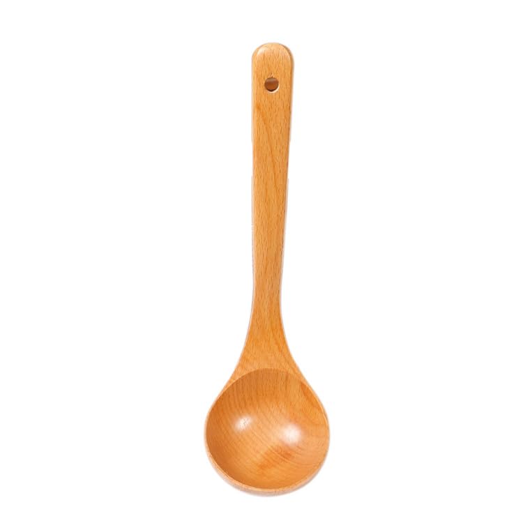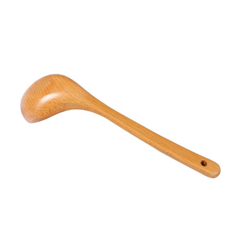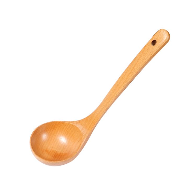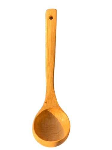 Generic - مغرفة شوربة خشبية بمقبض طويل - مصنوعة يدويًا من خشب طبيعي، آمنة على الأواني غير اللاصقة