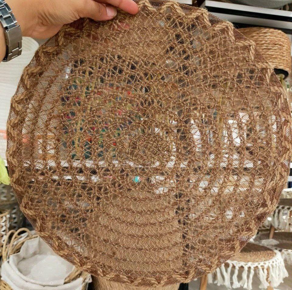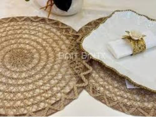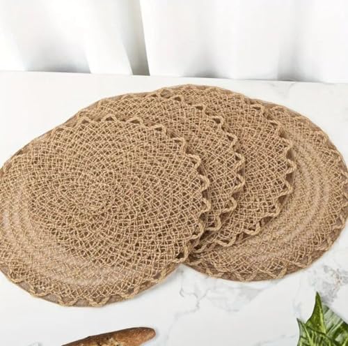 - تصميم مصنوع يدويًا: مفرش طاولة دائري جميل من الجوت يتميز بنمط حلزوني تقليدي معقد، مثالي لإضافة أناقة طبيعية إلى طاولة الطعام الخاصة بك